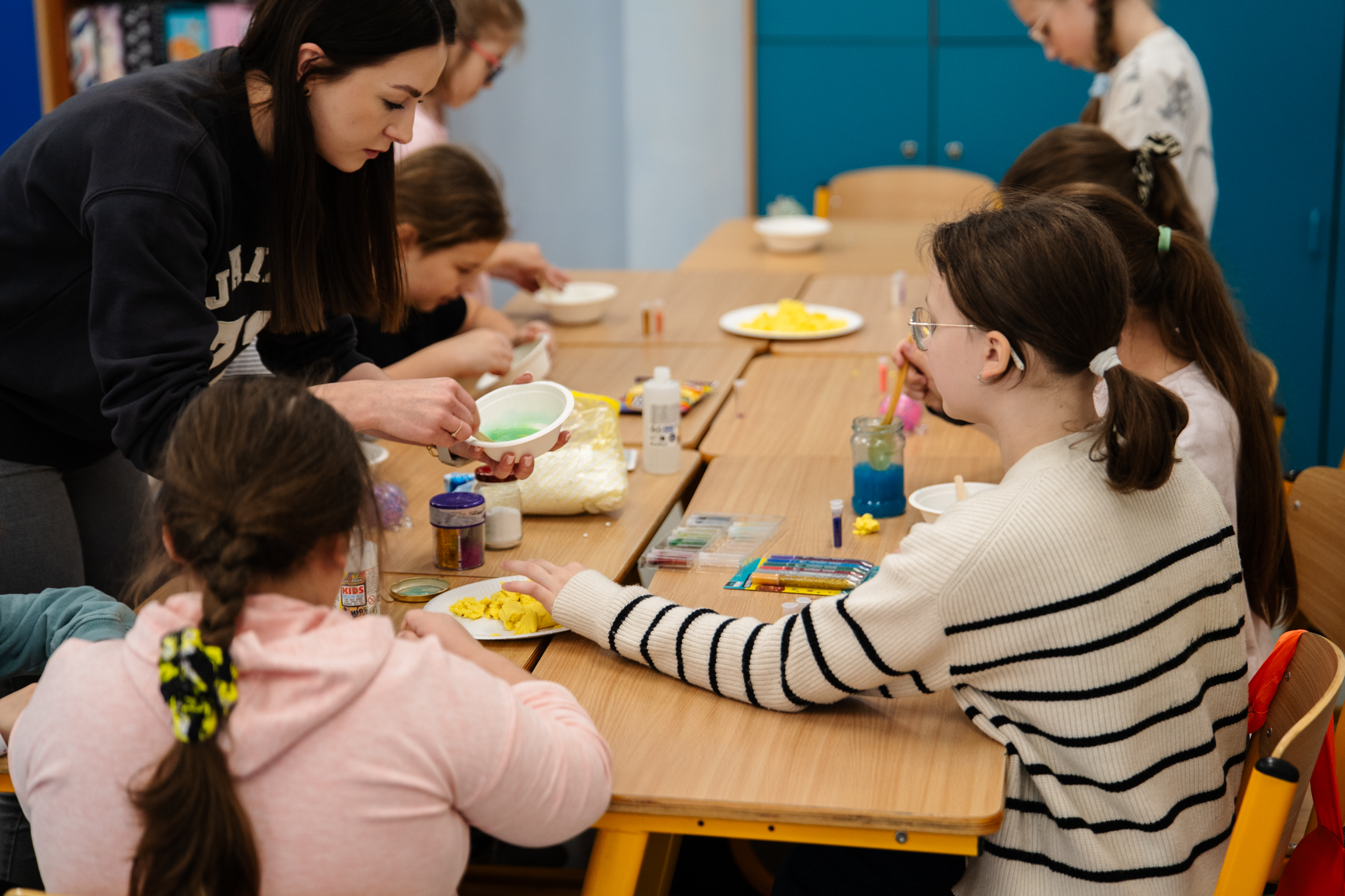 Nie brakowało też okazji do zajęć rozwijających współpracę i komunikację w grupie. Ważnym elementem półkolonii były warsztaty profilaktyczne, które w przystępnej formie pomagały dzieciom lepiej rozumieć emocje i relacje z rówieśnikami. Wszystko odbywało się w przyjaznej i wspierającej atmosferze, dzięki czemu ferie były nie tylko aktywne, ale też pełne wartościowych doświadczeń i nowych znajomości.