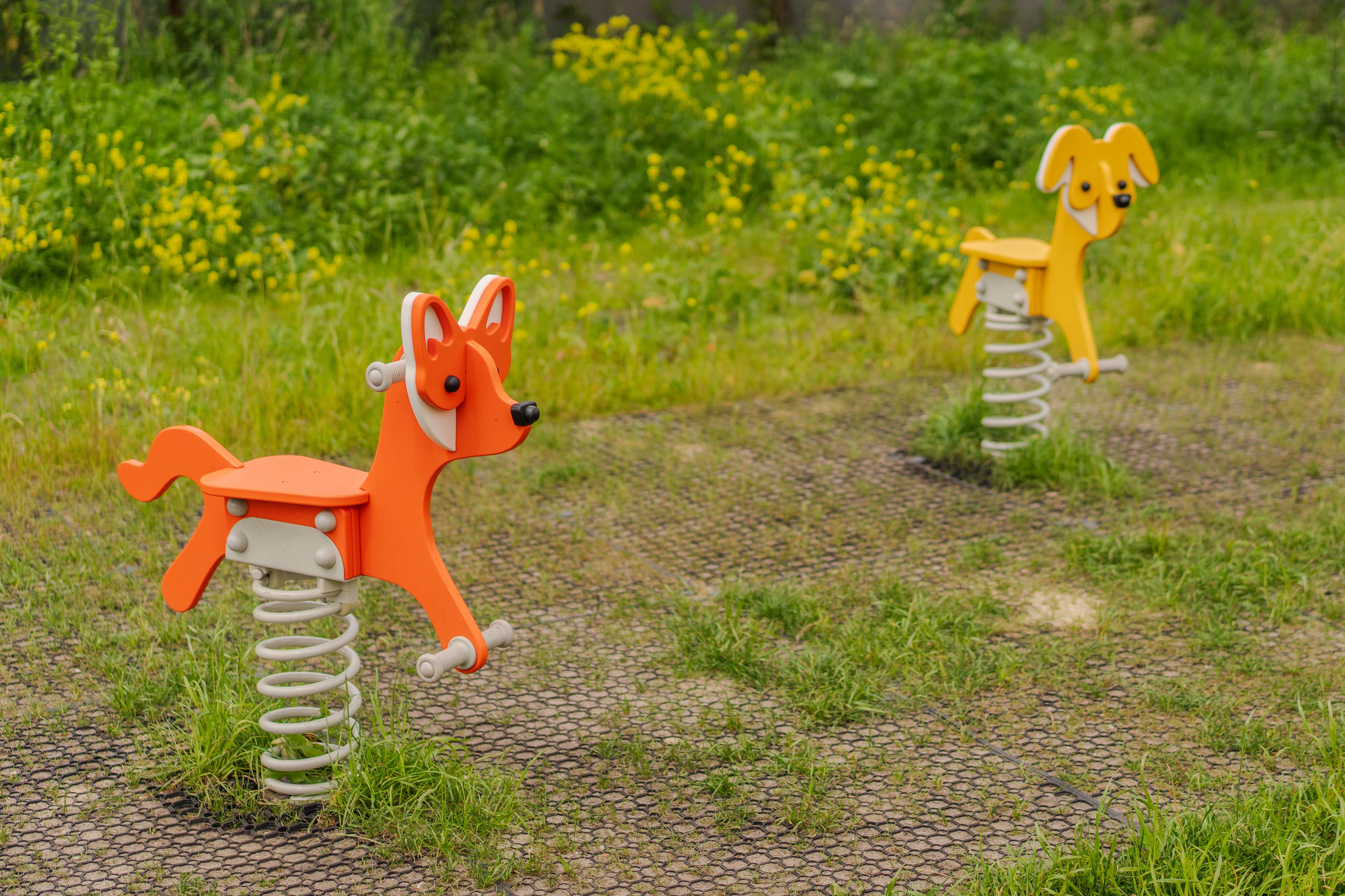 Z myślą o najmłodszych na placu pojawiły się trzy kolorowe bujaki na sprężynach w kształcie zwierząt – proste, bezpieczne i uwielbiane przez dzieci, które dopiero zaczynają swoją przygodę z placem zabaw. Jest też karuzela – klasyczna, dobrze znana atrakcja, która wciąż daje mnóstwo radości najmłodszym.