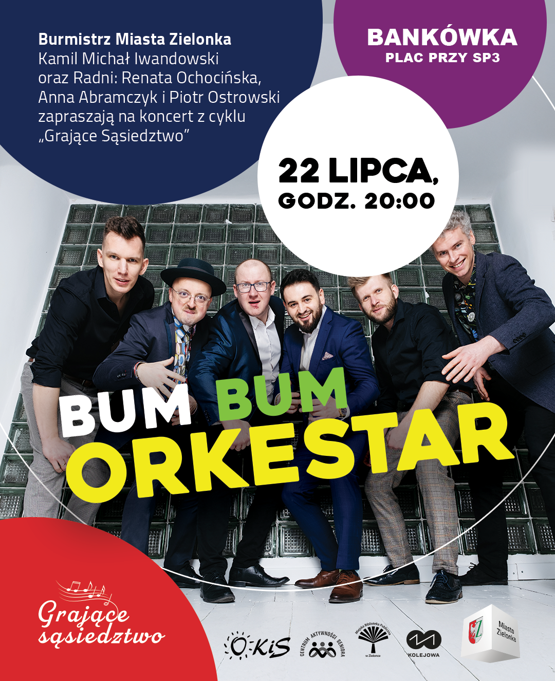 Już we wtorek, 22 lipca nasza letnia plenerowa scena muzyczna pojawi się przy Szkole Podstawowej nr 3. Wspólną sąsiedzką zabawę rozpoczniemy od solidnej dawki świetnej muzyki dla najmłodszych – o 18:00 wystąpi znany i lubiany zespół Czereśnie. A zaraz potem scenę przejmie BUM BUM ORKeSTAR z energetycznym połączeniem bałkańskich rytmów, klimatu klezmerskich ulicznych potańcówek i polskich oberków.