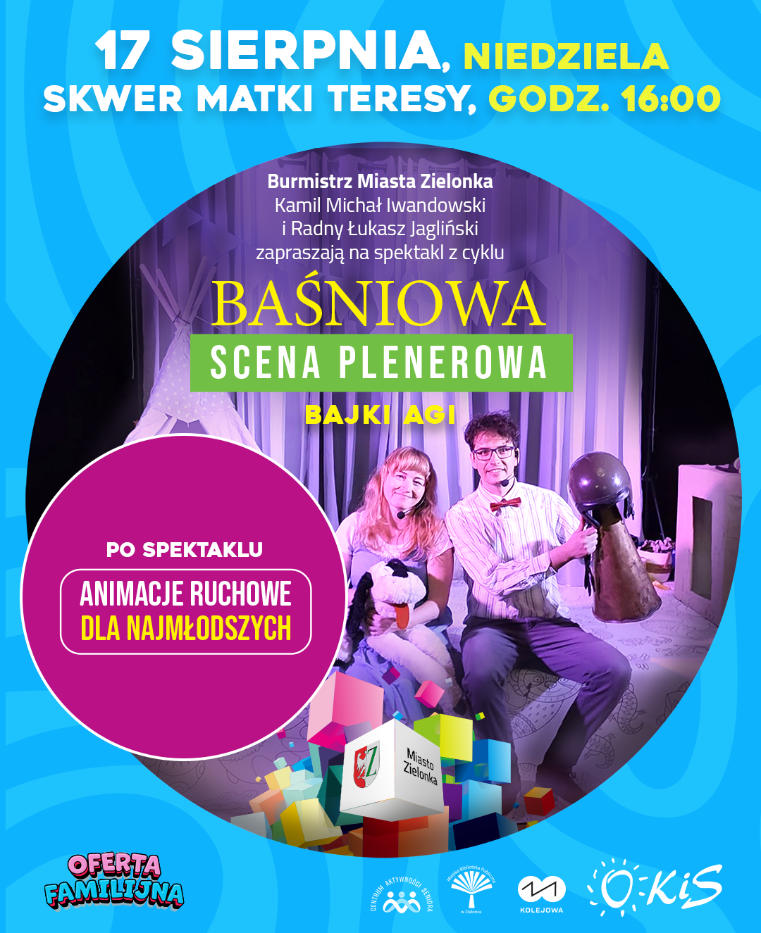 Już w niedzielę zapraszamy najmłodszych mieszkańców wraz z rodzicami na spektakl pt. „Bajki Agi”, w ramach cyklu „Baśniowa Scena Plenerowa”. Będzie to niezwykle barwna opowieść z elementami ekoedukacji.