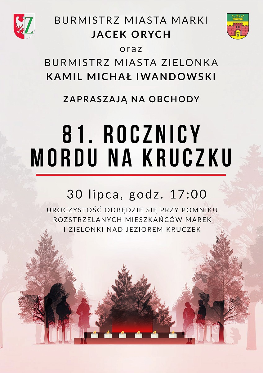 W tym roku oficjalne obchody zostaną poprzedzone polową Mszą Świętą o godzinie 16:30, która odbędzie się przy Pomniku Rozstrzelanych Mieszkańców Marek i Zielonki nad Jeziorem Kruczek.