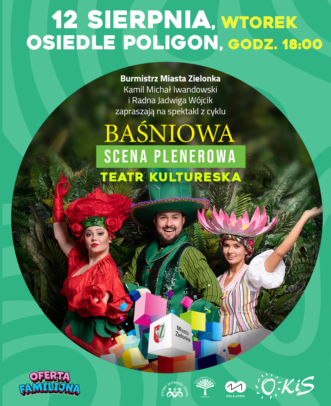 Bajkowa opowieść dla najmłodszych, muzyczne spotkanie pełne znanych przebojów i czas na sąsiedzką integrację – tak zapowiada się wtorkowy wieczór na Osiedlu Poligon. Zaczniemy od pełnego humoru spektaklu Teatru Kultureska „Bukiet Talentów. O 20:00 scenę przejmą Grzeczni Chłopcy z piosenkami, które wszyscy dobrze znamy i które stworzą wyjątkowy klimat naszego letniego, sąsiedzkiego spotkania.