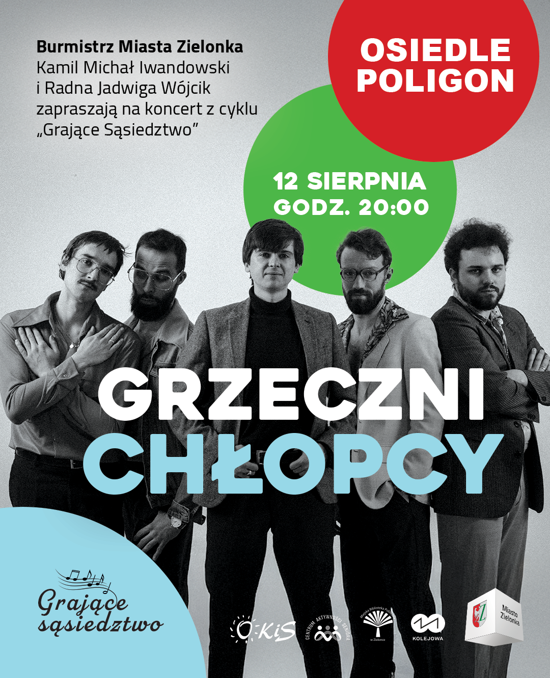Energia lat 70., bigbitowe rytmy i hity, które od lat nuci każdy z nas – to znak rozpoznawczy Grzecznych Chłopców. W ich repertuarze nie brakuje utworów takich artystów jak Kombi, Anna Jantar, Lady Pank czy Krzysztof Krawczyk. To muzyka, która łączy pokolenia i zachęca do wspólnej zabawy. Ich koncert będzie podróżą w czasie, z odrobiną nostalgii i mnóstwem radości, którą najlepiej przeżywać w gronie sąsiadów.