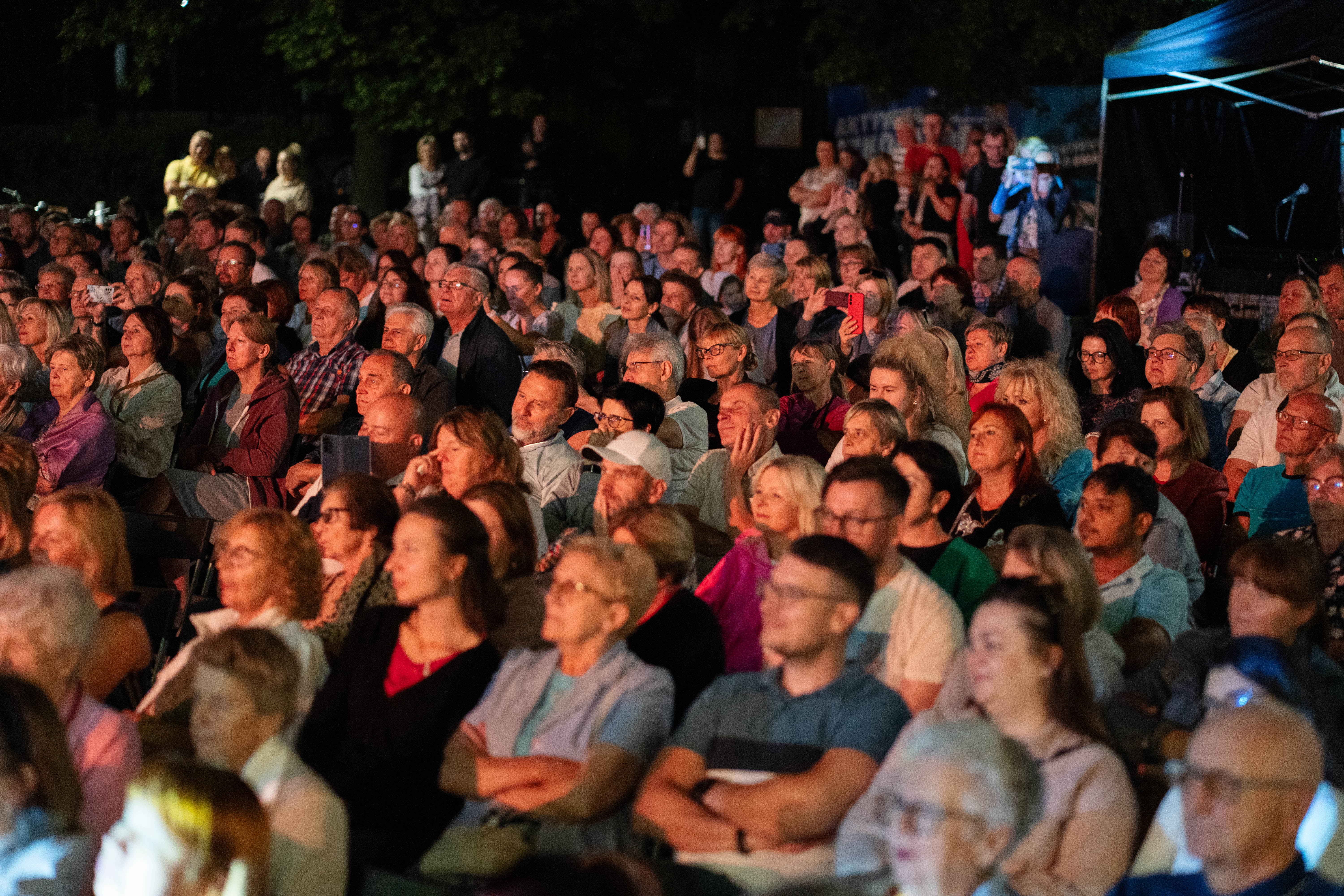 Pogoda w sobotni wieczór nam sprzyjała – ciepły, letni wieczór stworzył idealne warunki do muzycznej uczty pod gwiazdami. Im bliżej godziny 20:30, tym więcej osób gromadziło się na placu przy Zespole Szkół. Mieszkańcy przychodzili całymi rodzinami, ze znajomymi i sąsiadami, a miejsca szybko wypełniły się niemal do ostatniego.