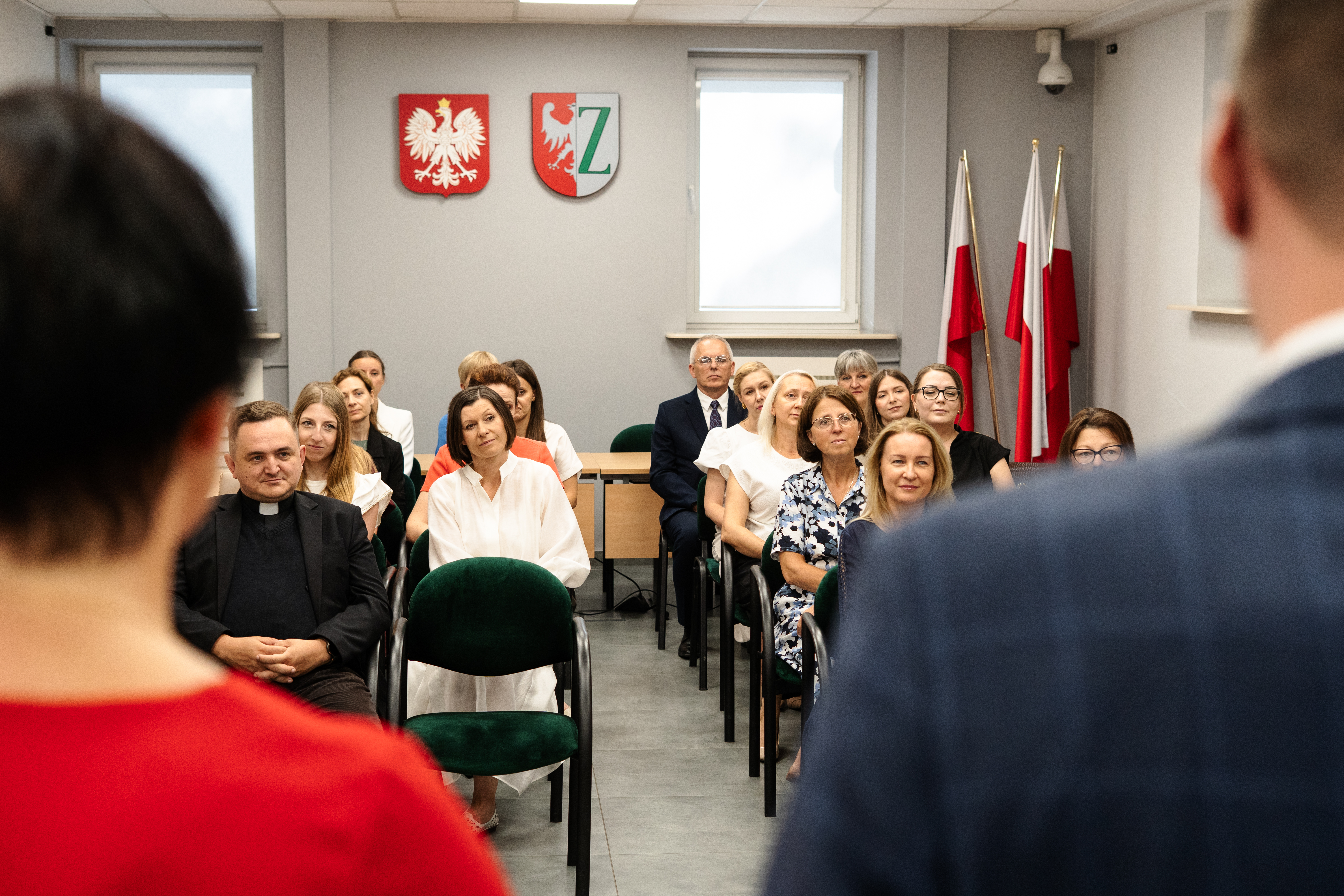 Podczas uroczystości, która odbyła się z udziałem Burmistrza Miasta Zielonka Kamila Michała Iwandowskiego, Sekretarz Miasta Renaty Jóźwiak oraz Dyrektor Centrum Usług Wspólnych Anny Hrynkiewicz, nauczyciele złożyli uroczyste ślubowanie, a następnie odebrali Akty Nadania Stopnia Awansu Zawodowego.
