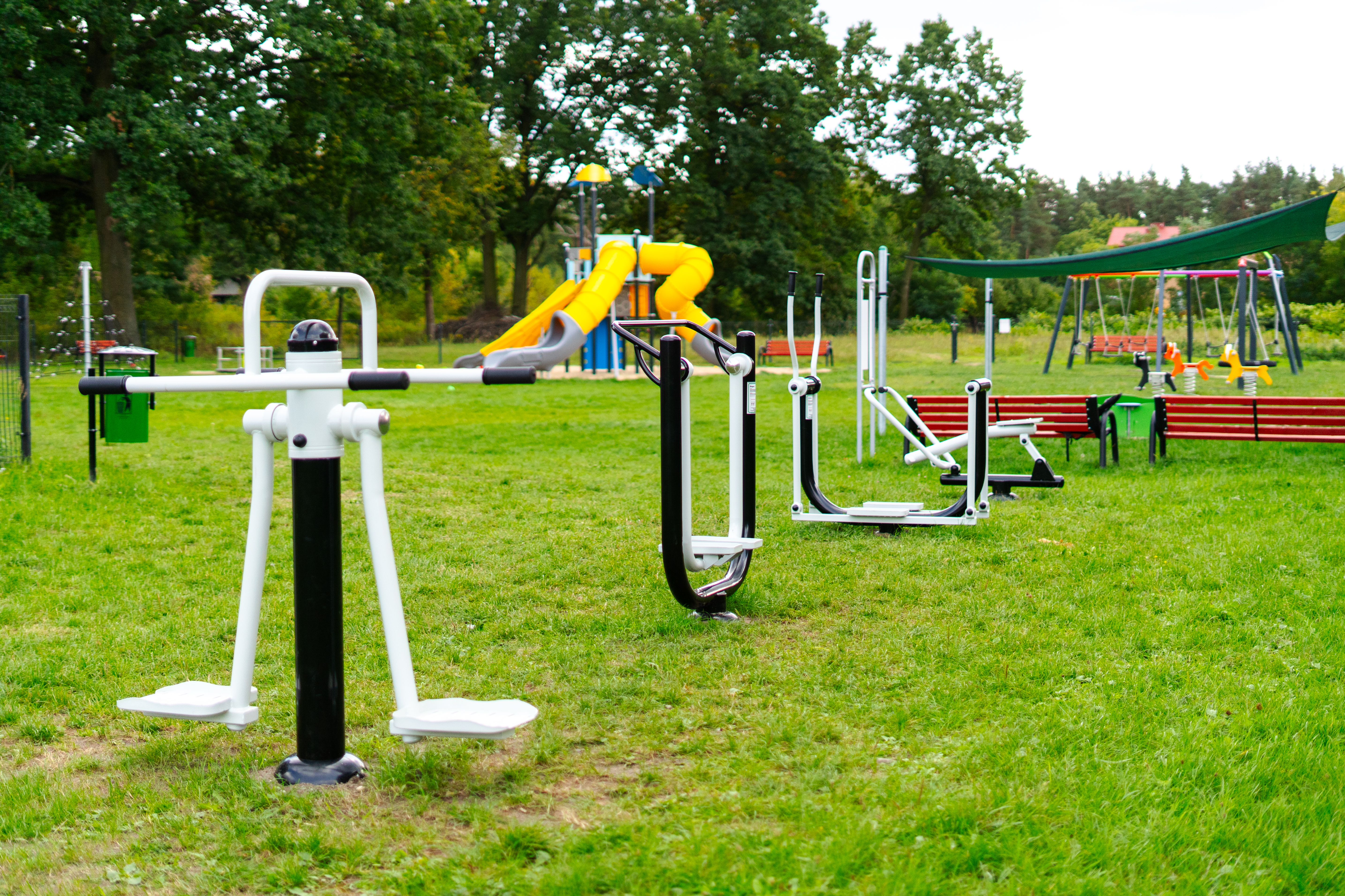 W drugiej części działki zostały ustawione cztery urządzenia siłowni plenerowej – biegacz, wioślarz, orbitrek i wahadło. Dzięki temu, gdy dzieci świetnie się bawią, rodzice, dziadkowie czy starsze rodzeństwo mogą w tym samym czasie aktywnie spędzać czas i zadbać o kondycję.