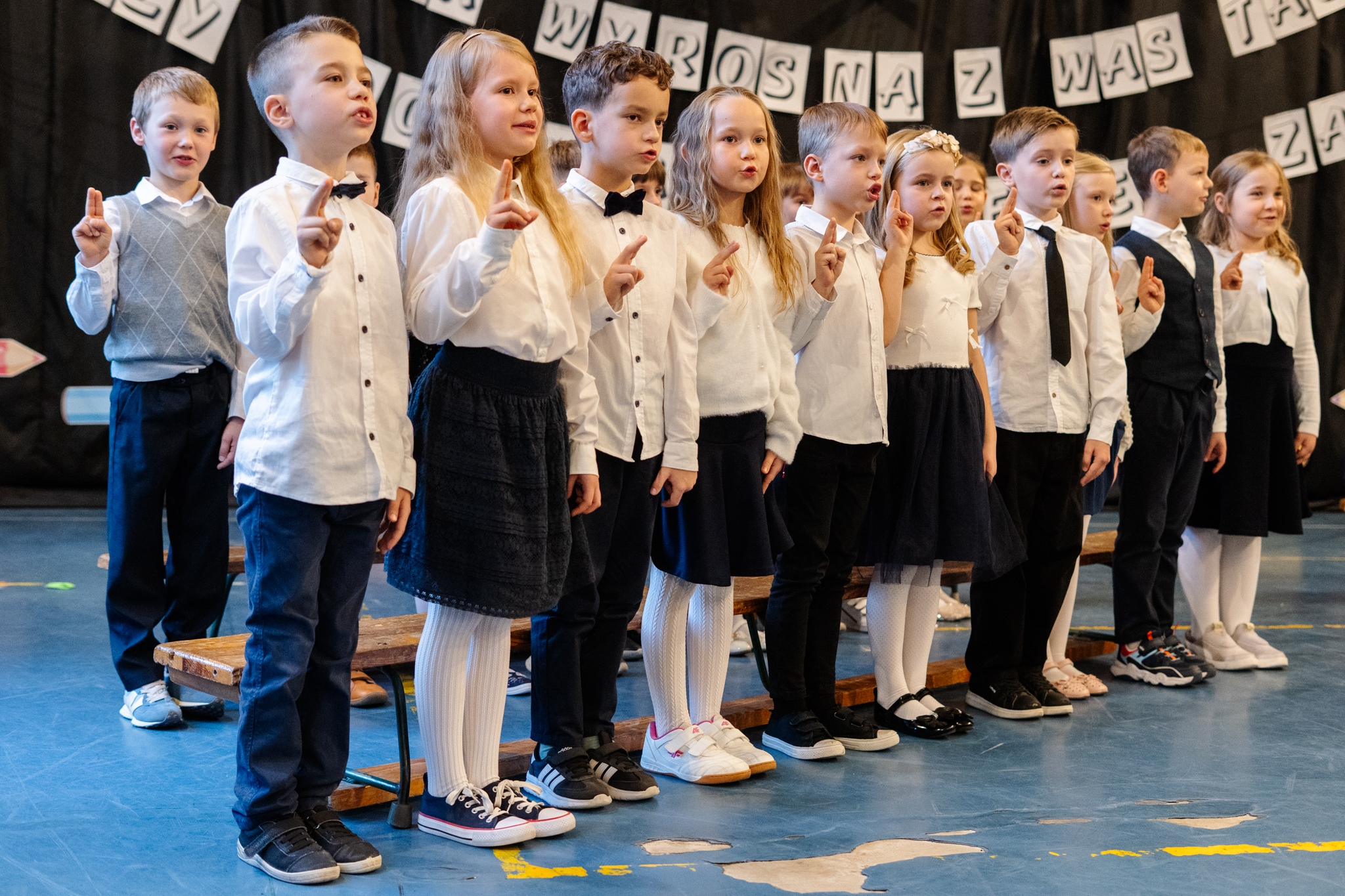 Uroczystość rozpoczęła się występem artystycznym przygotowanym przez dzieci. Były piosenki, wiersze i tańce – wszystko wykonane z ogromnym zaangażowaniem i radością. Rodzice z dumą obserwowali swoje pociechy, które z uśmiechem i przejęciem prezentowały to, czego nauczyły się w pierwszych tygodniach nauki.
