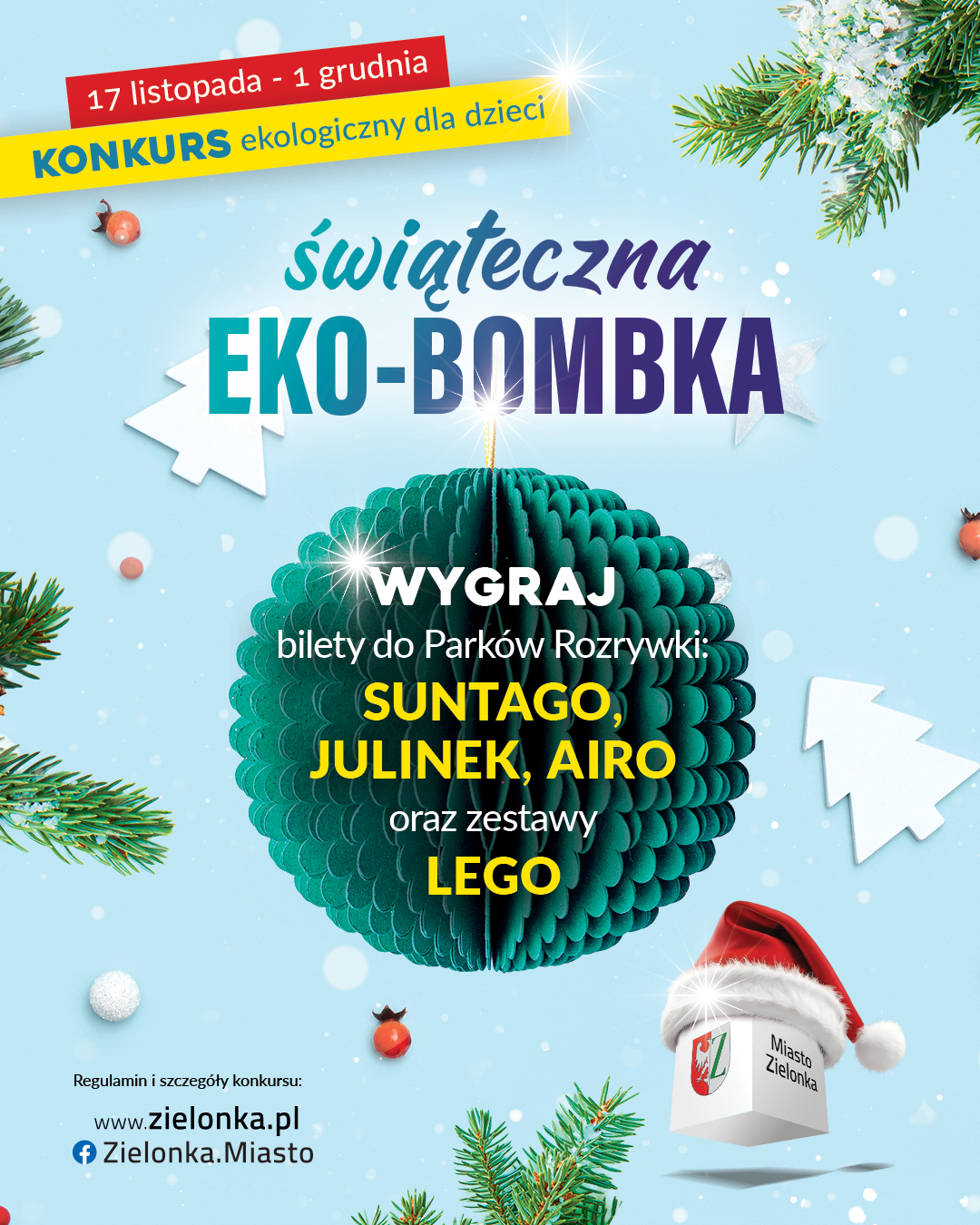 🔸 Wyniki konkursu zostaną ogłoszone 2 grudnia, a wręczenie nagród odbędzie się 5 grudnia w Urzędzie Miasta Zielonka.