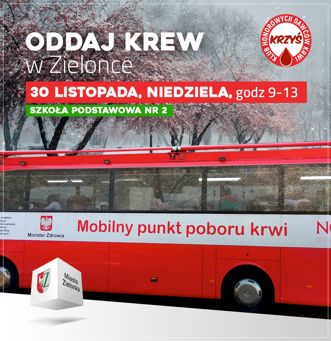 Jest bezcenna, ratuje życie, ale nie da się jej wyprodukować. Mowa o krwi. 30 listopada, w niedzielę, odbędzie się ostatnia w tym roku zbiórka krwi organizowana przez Klub Honorowych Dawców Krwi „Krzyś”. Krew oddać może zdrowa osoba dorosła w mobilnym punkcie krwiodawstwa, który stanie przed budynkiem Szkoły Podstawowej nr 2, przy ul. Powstańców 3 w Zielonce.