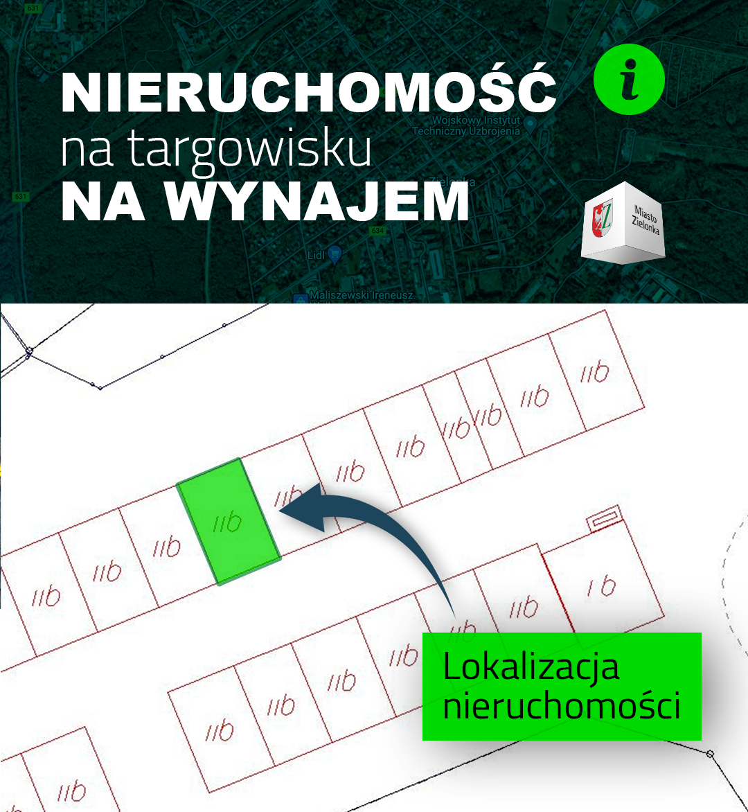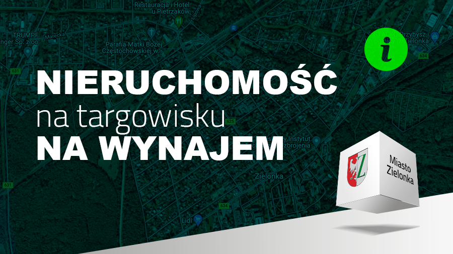 Burmistrz Miasta Zielonka ogłasza konkurs ofert na najem gruntu zabudowanego pawilonem handlowym, przeznaczonego na cele związane z prowadzeniem działalności usługowo-handlowej. Powierzchnia terenu wynosi 27 m2. (powierzchnia zabudowana pawilonem handlowym 24 m2 oraz 3 m2 powierzchni niezabudowanej). Stanowi ona część działki ewidencyjnej oznaczonej w ewidencji gruntów i budynków numerem 7/6 z obrębu 5-00-02 położonej przy ul. Kolejowej.