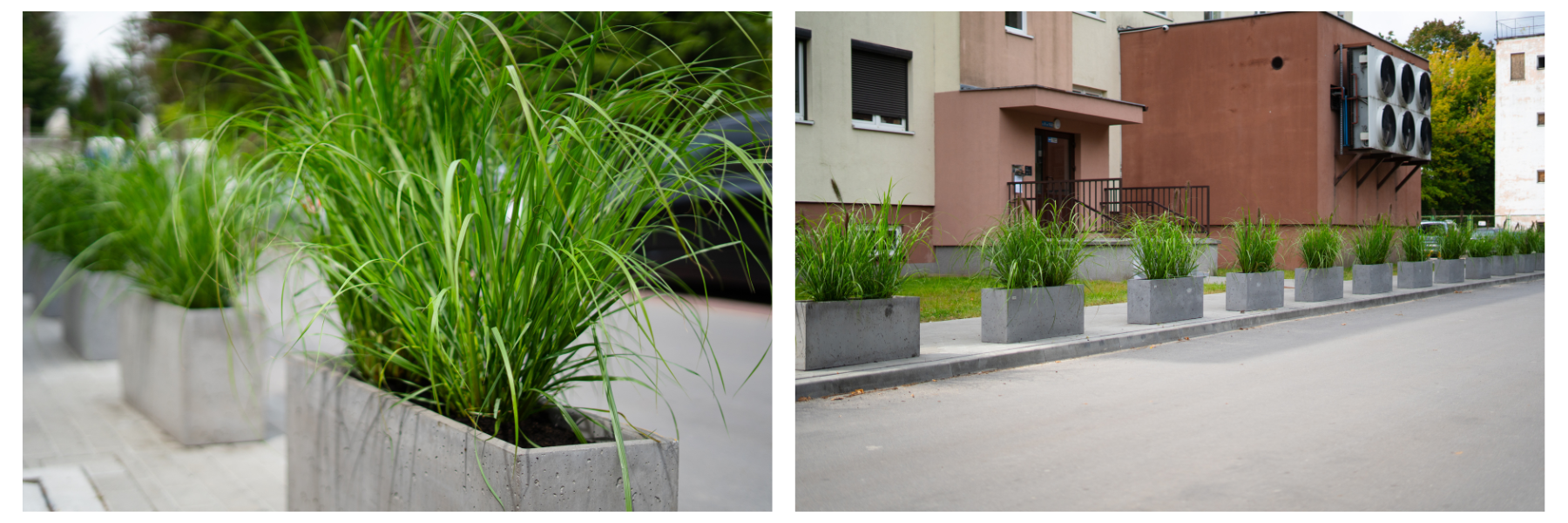 Są też miejsca, gdzie zieleń spełnia funkcję bardzo praktyczną. Mieszkańcy Osiedla Poligon zwracali uwagę na problem nieprawidłowo parkujących samochodów na chodnikach. Naszą odpowiedzią na te niedogodności były 23 betonowe donice z nasadzeniami traw – rozplenic – ustawione m.in. w pobliżu bloków nr 18 i 21 oraz przy wjeździe do przedszkola. To rozwiązanie, które łączy estetykę z porządkiem w przestrzeni wspólnej.