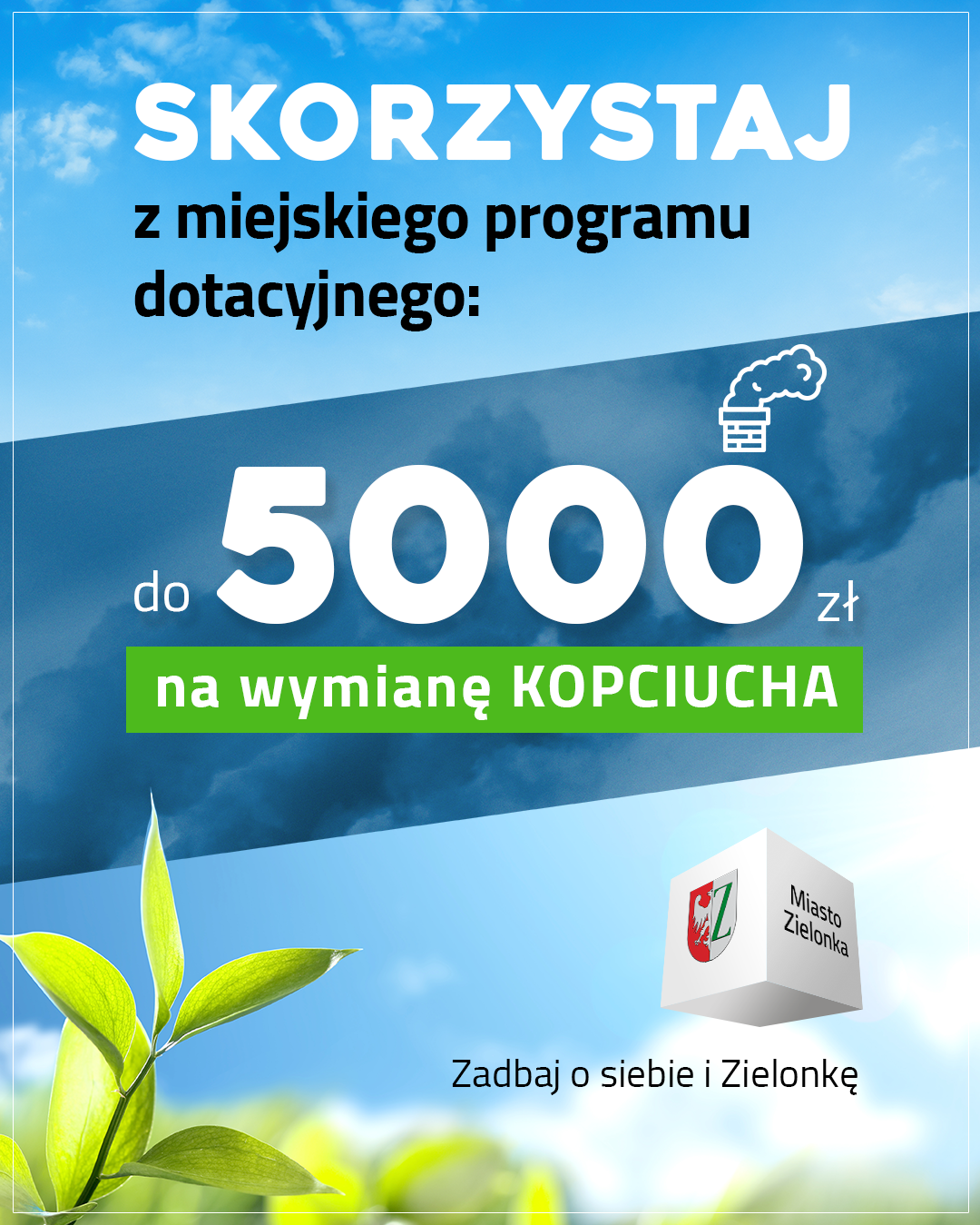 Wspólnie możemy poprawić jakość powietrza w Zielonce. Ruszyła kolejna edycja miejskiego programu dotacyjnego, w ramach którego można pozyskać nawet 5 tys. zł dofinansowania na wymianę kopciucha. Wnioski składać można od 15 stycznia do 31 marca 2026 r. Zachęcamy do zapoznania się ze szczegółami programu. Wszelkie potrzebne dokumenty znajdują się w załącznikach na dole strony.
