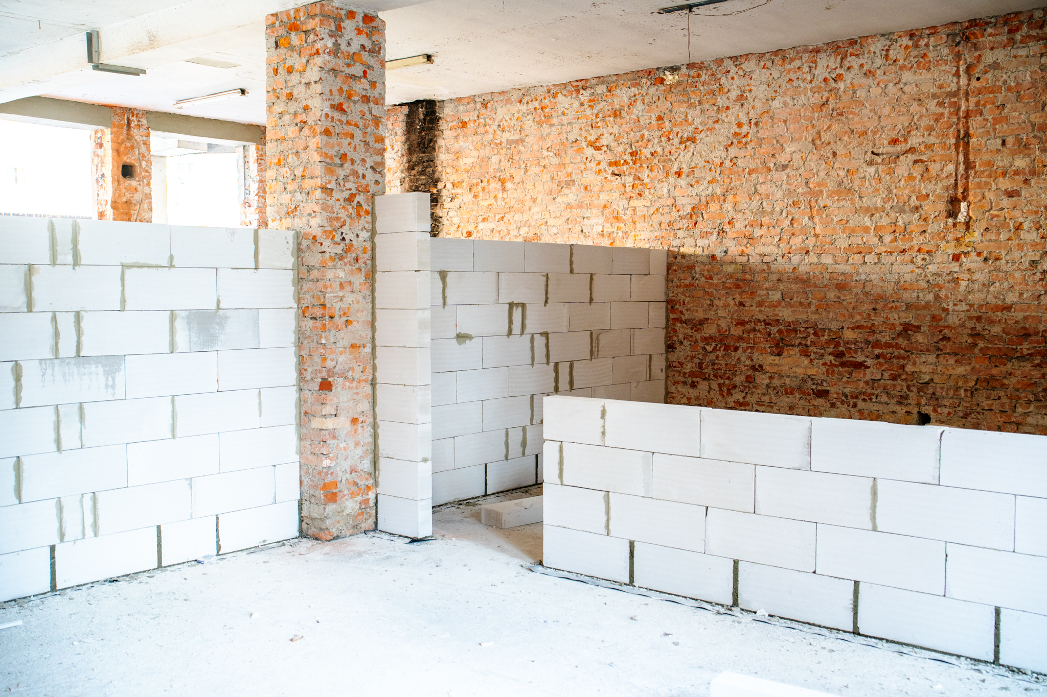 Wykonano ściany działowe na piętrze oraz kontynuowanana jest budowa ścianek działowych na parterze, które kształtują docelowy układ funkcjonalny pomieszczeń.