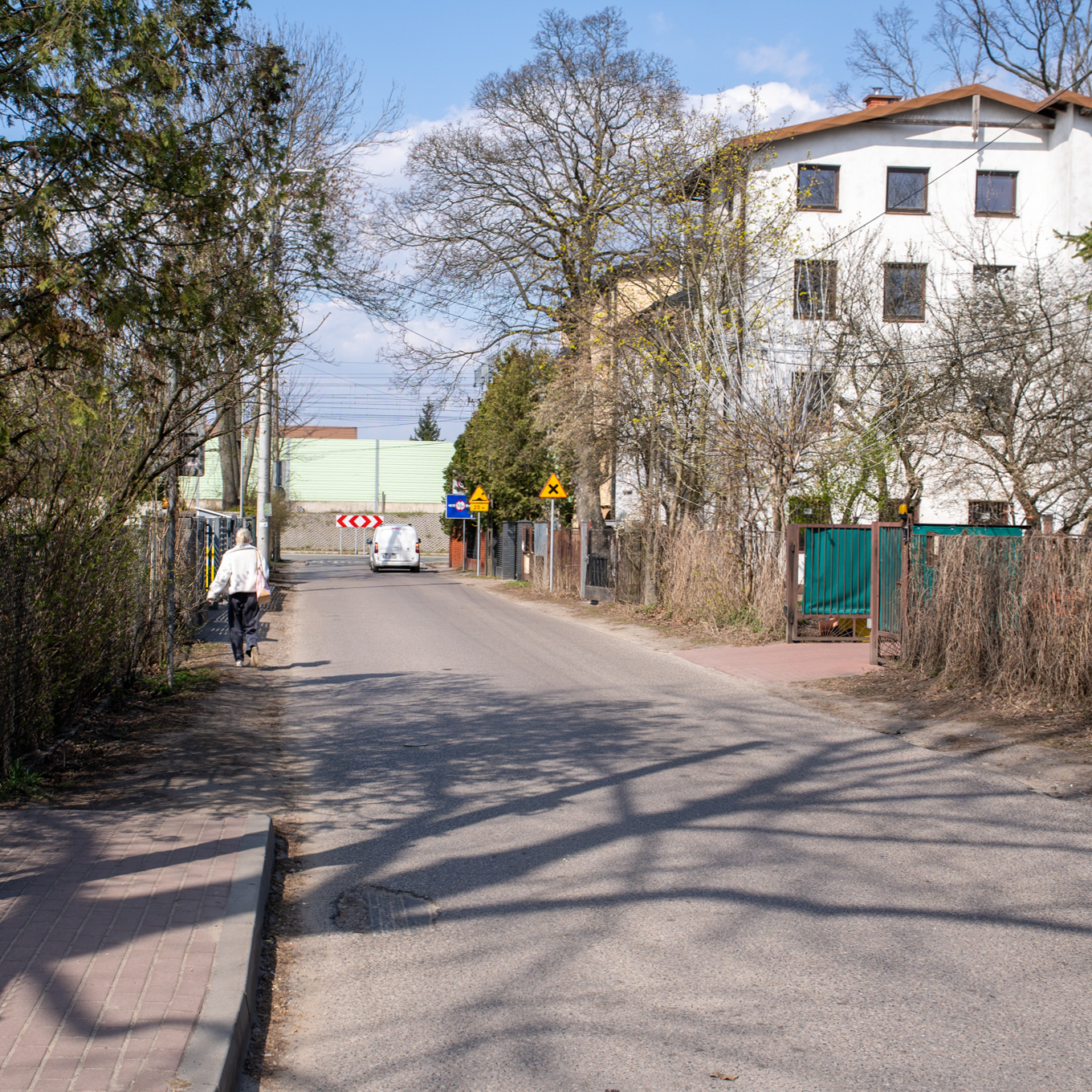 To zadanie jest jednocześnie wymagające pod względem projektowym. Pas drogowy ul. Staszica w tym miejscu nie jest szeroki, a po obu stronach znajdują się zabudowane posesje. Budynki są usytuowane w niewielkiej odległości od pasa drogowego, co w istotny sposób ogranicza możliwości rozbudowy ulicy. W praktyce oznacza to, że zakres możliwych rozwiązań był tu znacznie mniejszy niż w przypadku ulic o szerszym przekroju i większej rezerwie terenu.