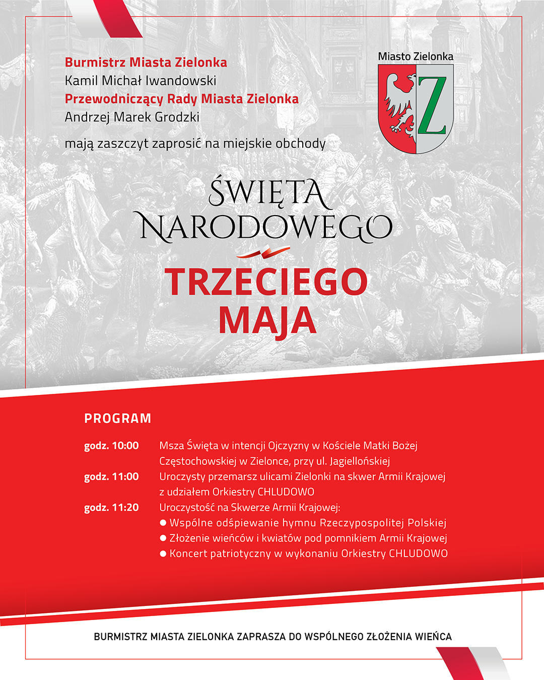 Serdecznie zapraszamy Państwa do udziału w uroczystościach. Spotkajmy się 3 maja, aby wspólnie uczcić ten wyjątkowy dzień.