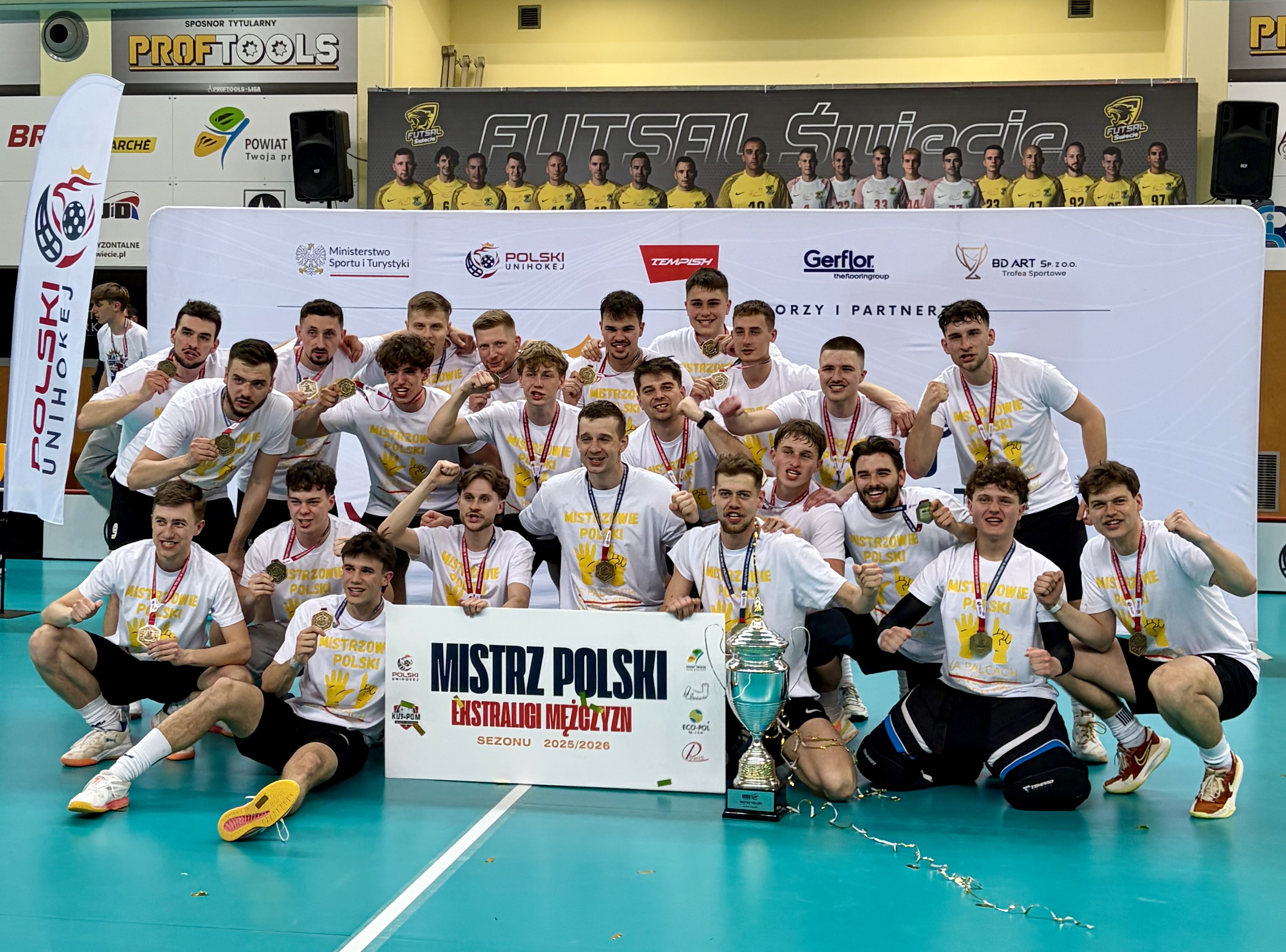 Finał, który odbył się 25 kwietnia w Świeciu, był zwieńczeniem kolejnego znakomitego sezonu w wykonaniu naszych unihokeistów. Drużyna seniorów sięgnęła po mistrzostwo dzięki konsekwencji, determinacji, ciężkiej pracy oraz ogromnemu zaangażowaniu całego zespołu — zawodników, trenerów, sztabu i osób wspierających Klub.