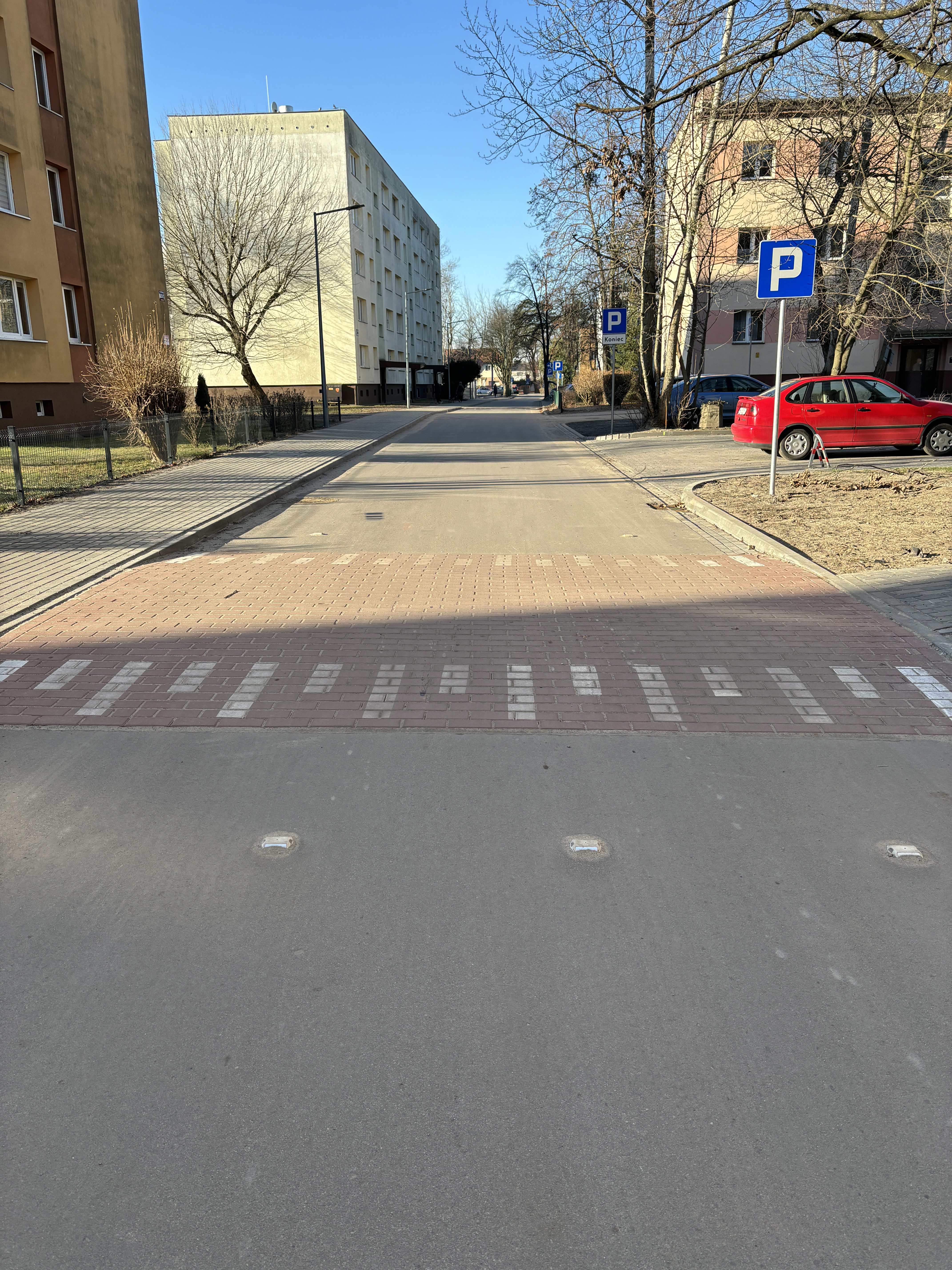 W ramach prac zostały zbudowane dwa wyniesione skrzyżowania przy bloku numer 21, a także pięć progów zwalniających. Dodatkowo, została utrzymana tzw. strefa zamieszkania, w której prędkość pojazdów ograniczono do 20 km/h. Takie rozwiązania ograniczają nadmierną prędkość pojazdów, tym samym zwiększając bezpieczeństwo pieszych.