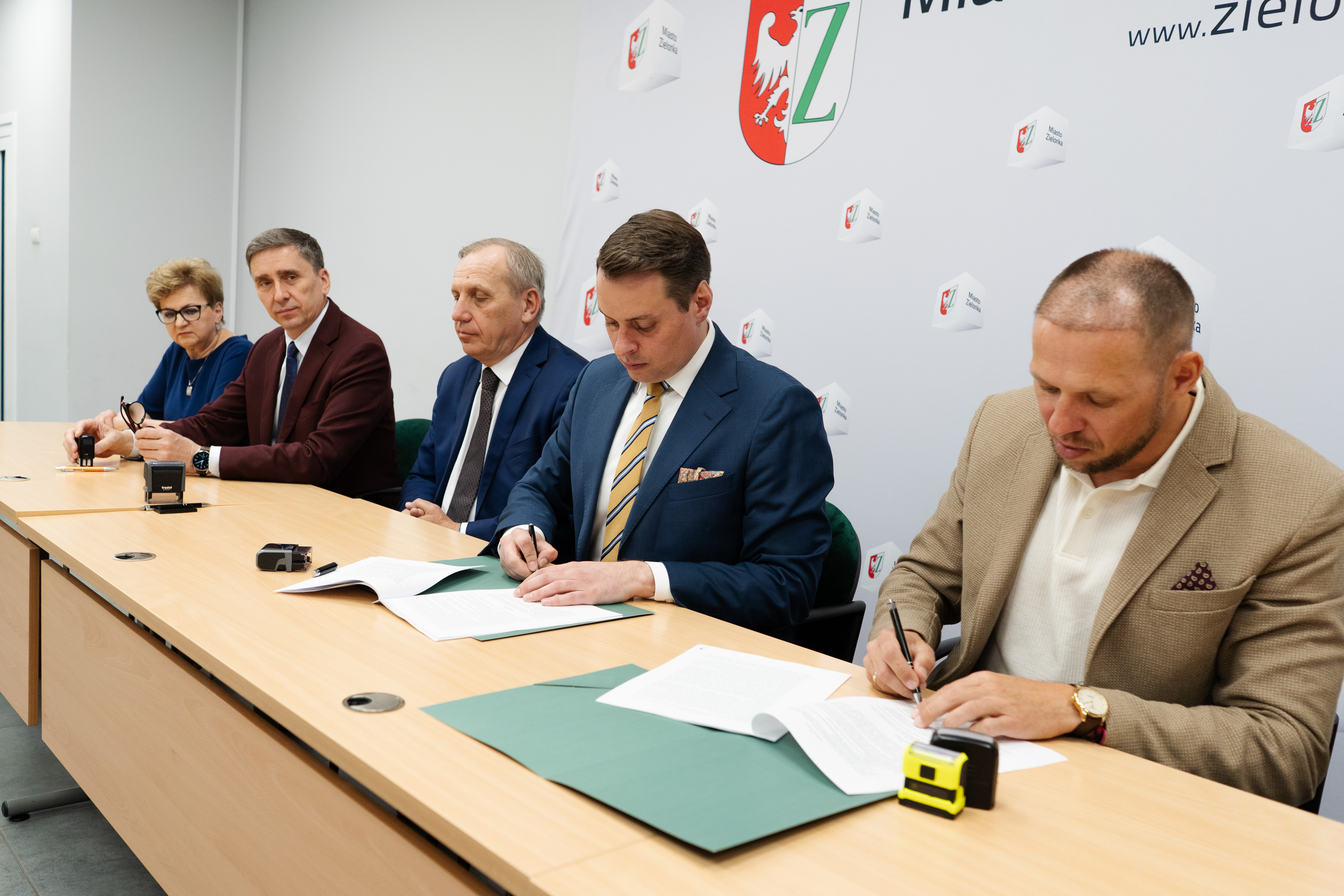 Burmistrz Kamil Michał Iwandowski podpisał umowę z wykonawcą – firmą ROW – która już w przyszłym tygodniu rozpocznie prace budowlane. Tym samym teren w sąsiedztwie bloków nr 1 i 8 zmieni się nie do poznania. W tej ważnej chwili dla rozwoju miejskiej infrastruktury sportowo-rekreacyjnej uczestniczyli również Zastępca Burmistrza Tomasz Pieloszczyk, Radna Jadwiga Wójcik, przedstawiciele firmy ROW oraz pracownicy wydziałów merytorycznych Urzędu Miasta Zielonka.
