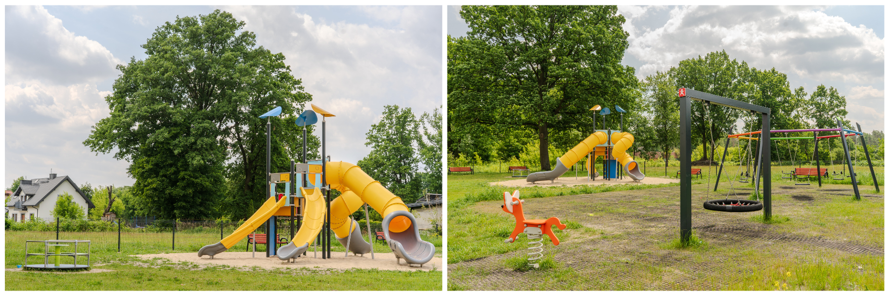 Stare, zużyte elementy zostały zastąpione przez nowe urządzenia, które zapewniają wyższy poziom bezpieczeństwa i trwałości. Na placu zabaw zamontowano m.in.: dwie zjeżdżalnie, bujak sprężynowy, czworościan gimnastyczny, pomost sprawnościowy i huśtawkę wahadłową.