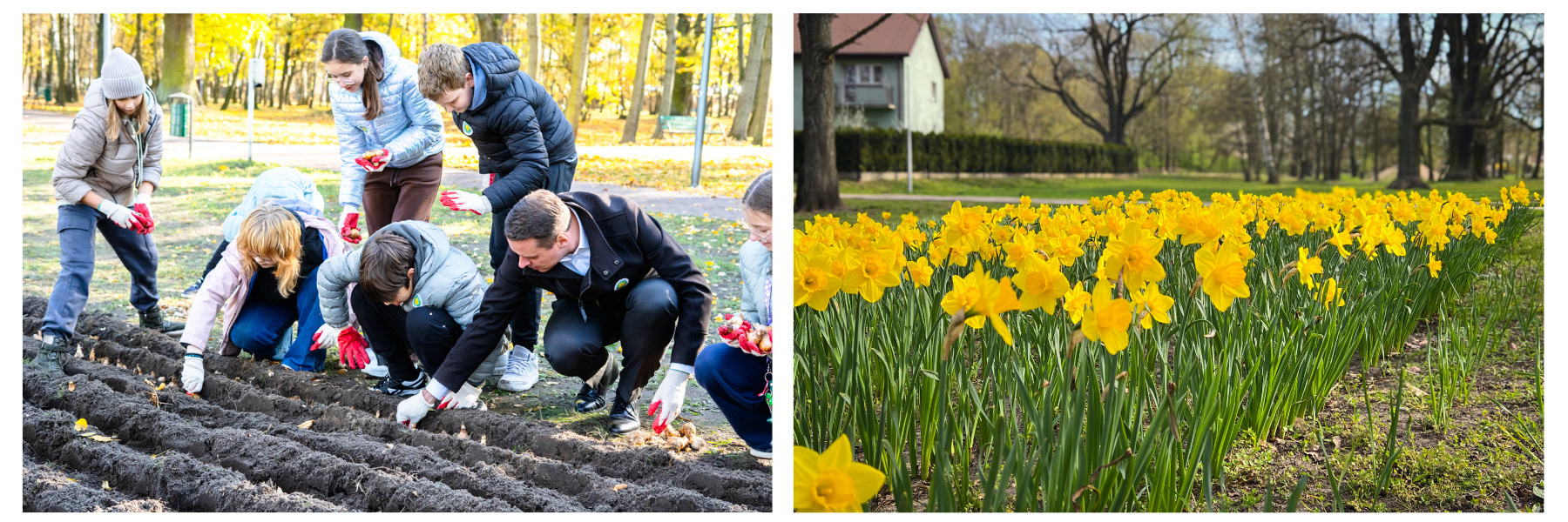 Nasadzenia mają też wymiar symboliczny. W październiku ubiegłego roku Zielonka włączyła się w akcję „Pola Nadziei” w Parku Dębinki. Uczniowie Szkoły Podstawowej nr 2 wspólnie z Burmistrzem Kamilem Michałem Iwandowskim posadzili cebulki żonkili – znak wsparcia i solidarności z osobami zmagającymi się z chorobą nowotworową.