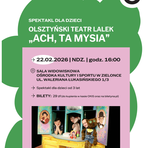 W niedzielę zapraszamy wszystkie dzieci na wyjątkowy spektakl Olsztyńskiego Teatru Lalek. To klasyczna komedia omyłek, w której bohaterami są: Pani Domu, Myszka i Kot. Ten zestaw osobowości jest źródłem wielu zwrotów akcji. Gospodyni chcąc pozbyć się niechcianego lokatora - gryzonia, sprowadza odwiecznego wroga myszy – kota. Jednak cała sytuacja gmatwa się, bowiem sympatyczna mysz, zwana Mysią, uznaje kota za swego... najlepszego kolegę.