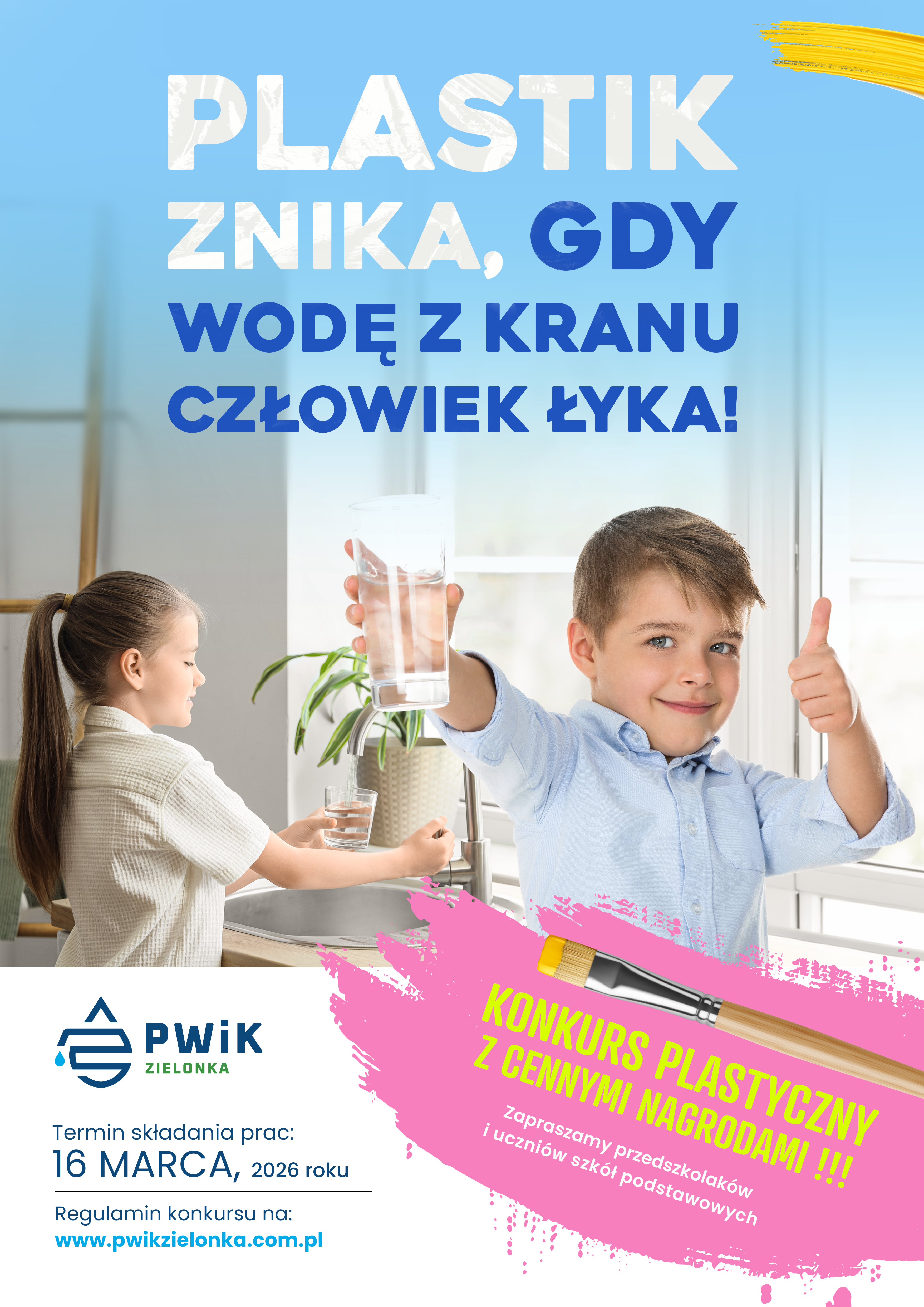 Właśnie tę ideę promuje konkurs „Plastik znika, gdy wodę z kranu człowiek łyka!”, przygotowany przez PWiK w Zielonce. To okazja, by poprzez twórczą pracę zachęcić do picia wody z kranu i pokazać, że codzienne nawyki mają znaczenie dla nas wszystkich.