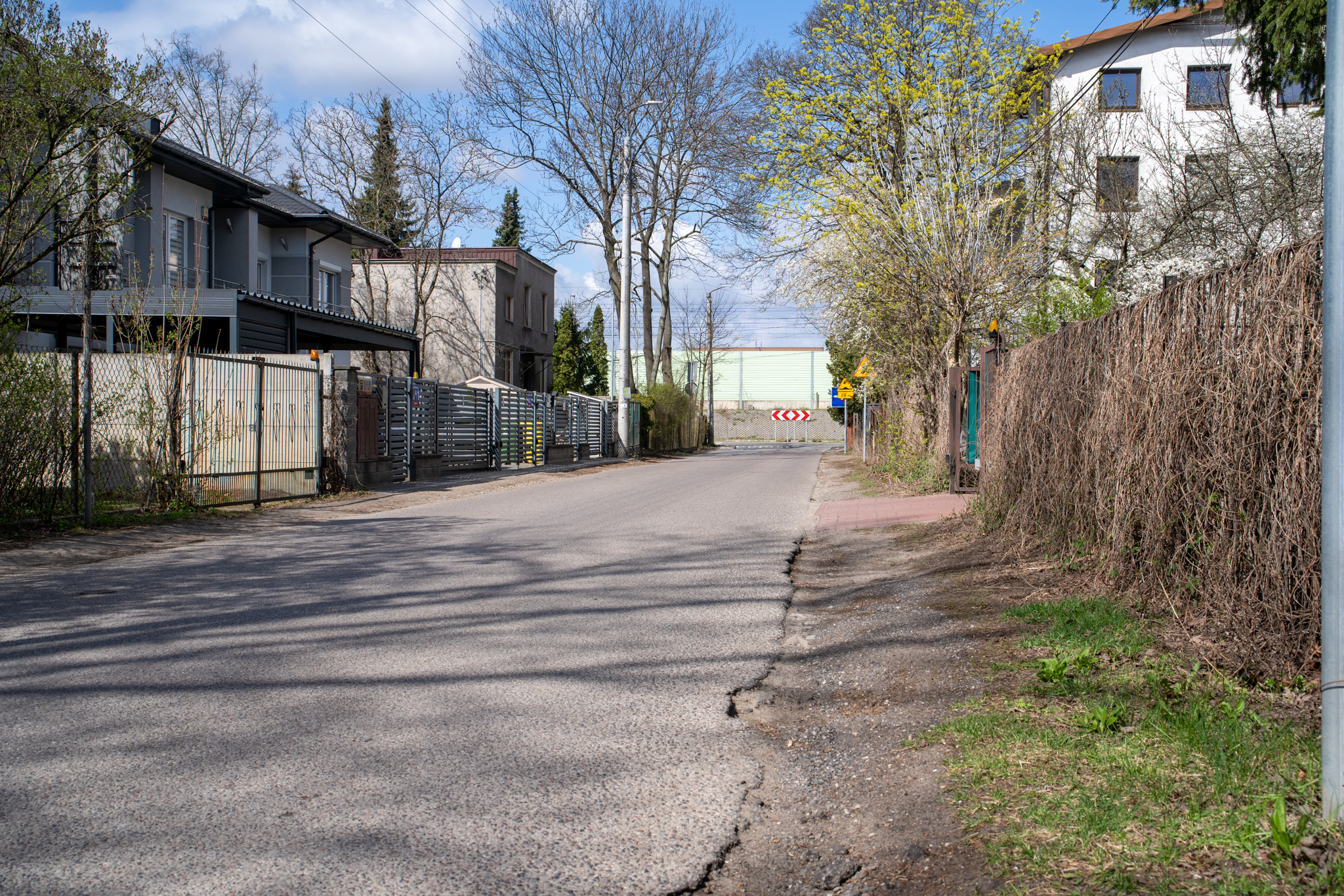 To zadanie jest jednocześnie wymagające pod względem projektowym. Pas drogowy ul. Staszica w tym miejscu nie jest szeroki, a po obu stronach znajdują się zabudowane posesje. Budynki są usytuowane w niewielkiej odległości od pasa drogowego, co w istotny sposób ogranicza możliwości rozbudowy ulicy. W praktyce oznacza to, że zakres możliwych rozwiązań był tu znacznie mniejszy niż w przypadku ulic o szerszym przekroju i większej rezerwie terenu.